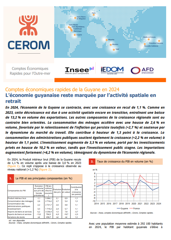 En 2024, l’économie de la Guyane se contracte, avec une croissance en recul de 1,1 %. Comme en