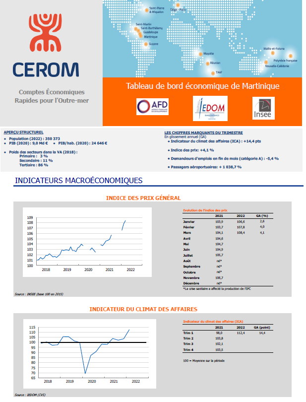 Tableau de bord économique de Martinique - 1er trimestre 2022