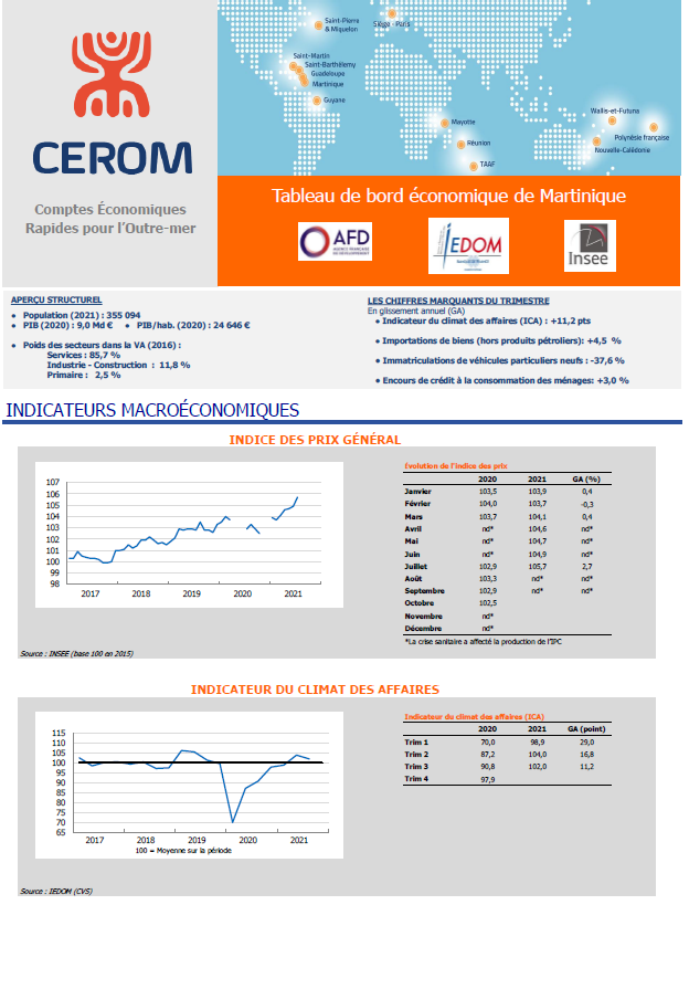 Tableau de bord économique de Martinique - 3e trimestre 2021