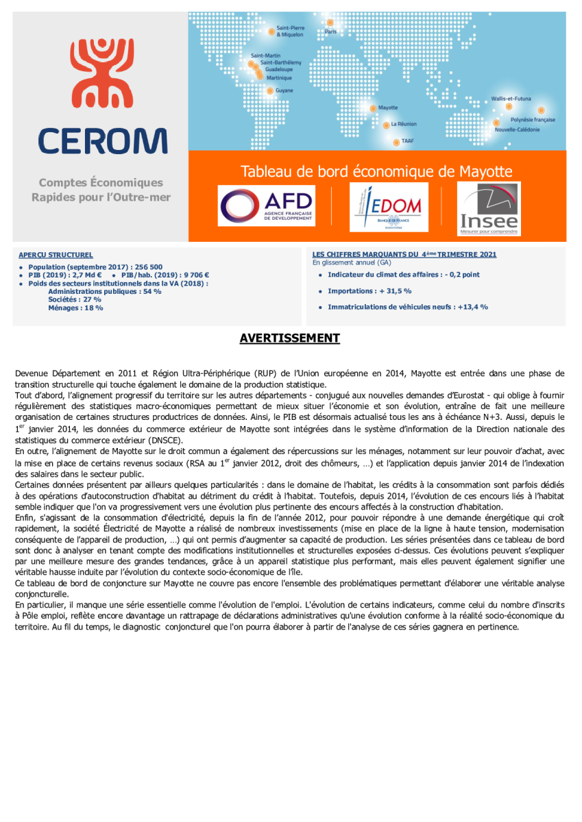 Tableau de bord CEROM - Mayotte - 4ème trimestre 2021