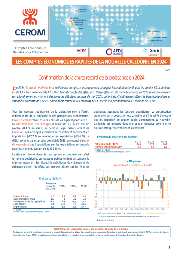 Les comptes économiques rapides de la Nouvelle-Calédonie en 2024