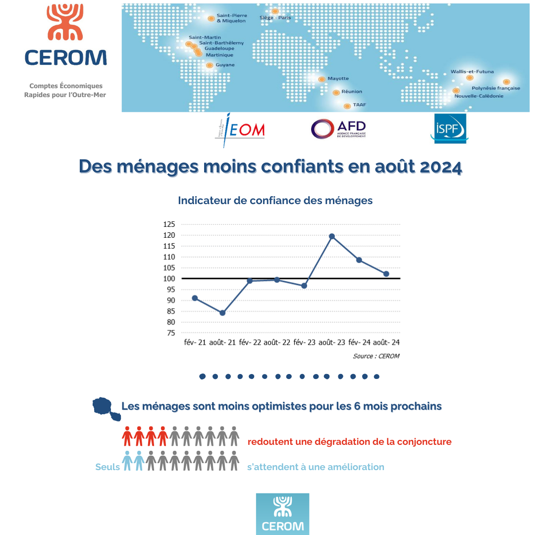 À l’issue de l’enquête réalisée en août 2024, l’indicateur de confiance des ménages se rétracte, tant sur six mois (février 2024) que sur un an (août 2024).