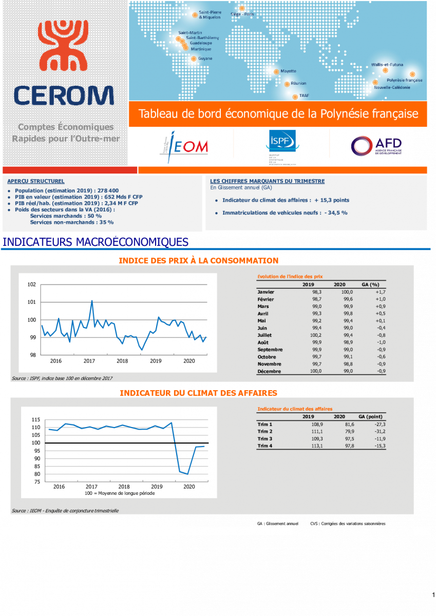 Tableau de bord économique de la Polynésie française - 4e trimestre 2020